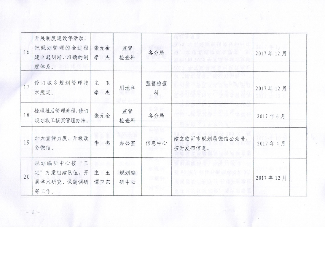 临沂市规划局关于印发《2017年重点业务工作责任分工》的通知